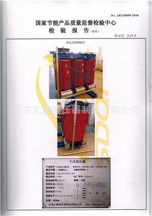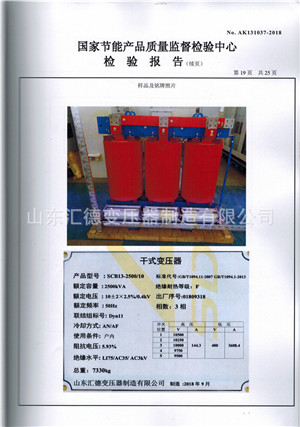SCB13-2500干式變壓器檢驗報告